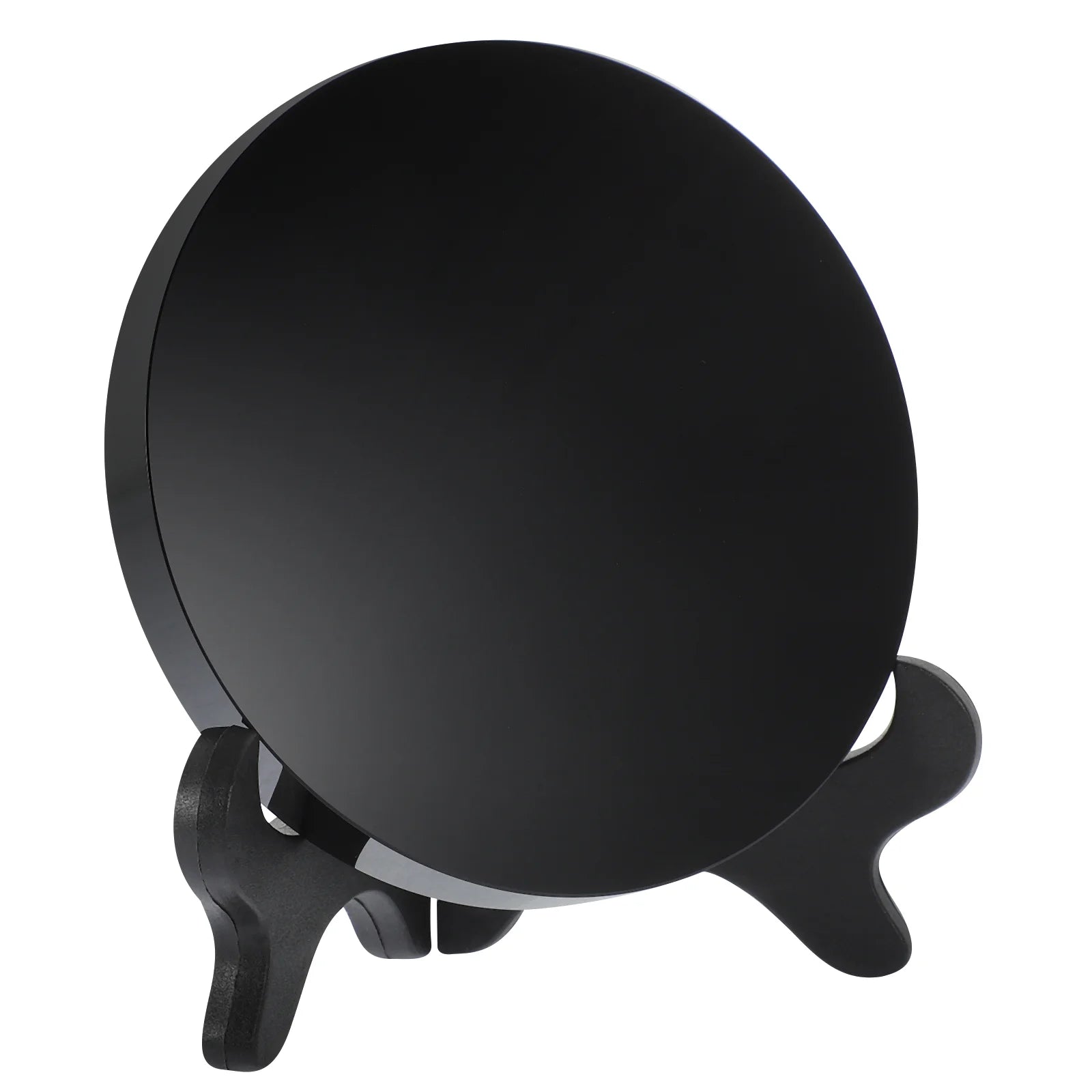 High quality natural black obsidian scrying mirror healing crystals stone round plate witchcraft mirror crystal decor with stand black mirrors
