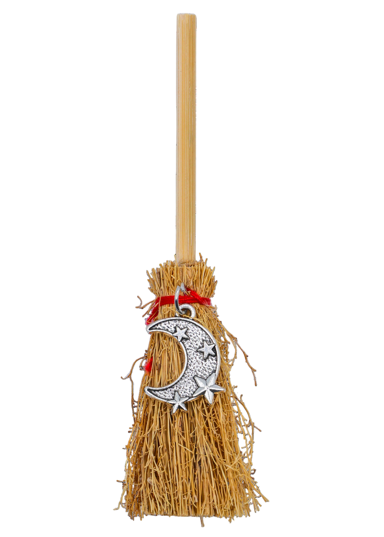 The moonlight-inspired charm connects you to intuition and inner strength, while the broom’s symbolic sweep clears away fear and confusion, making space for clarity and spiritual renewal.