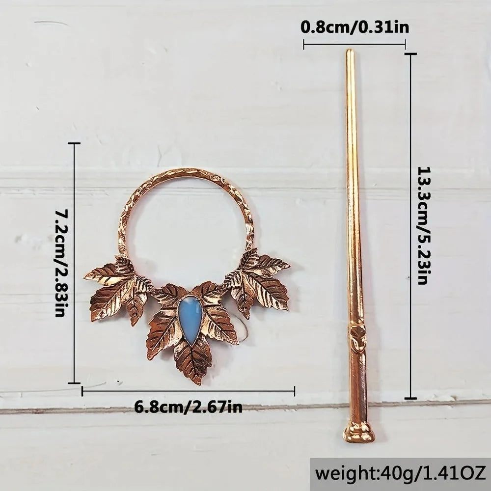 Cute Witch Tree Leaves Elf Hair Stick Barrette Hairpin Jewelry Vintage Natural Fairy Stone Inlaid Hair Accessories Jewelry Gift