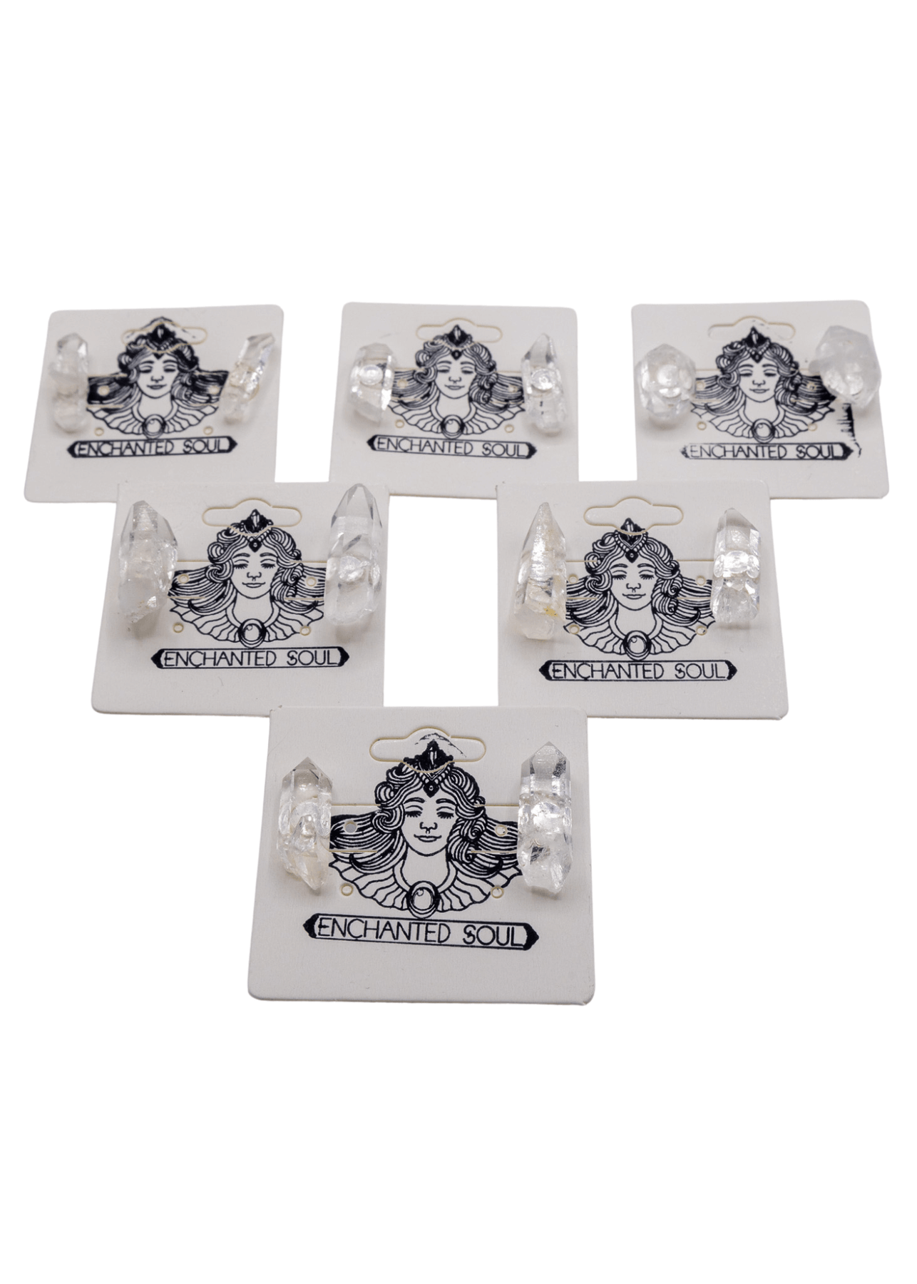 Tap into the pure energy of the Earth with these Arkansas Quartz Crystal Earrings, handcrafted with raw, high-quality quartz sourced directly from the crystal-rich mountains of Arkansas. Known for their exceptional clarity and powerful metaphysical properties, these natural quartz points are securely set on sterling silver studs with matching backs, ensuring both durability and comfort for everyday wear.