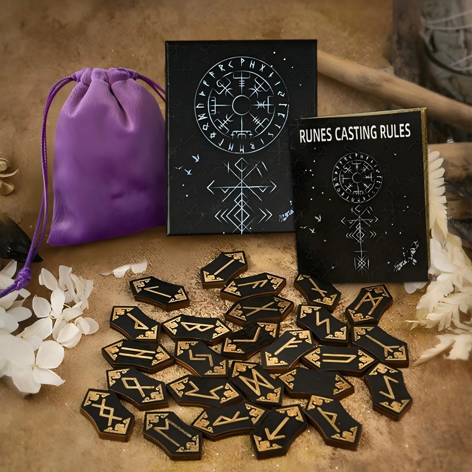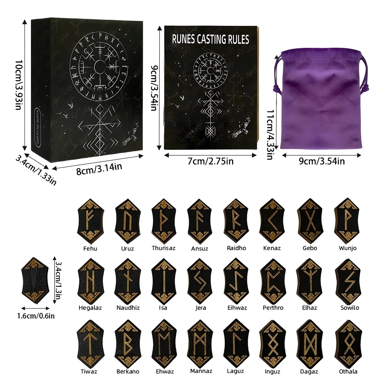Comes with 1 Jewelry Bag, Runes, and Wooden Box.