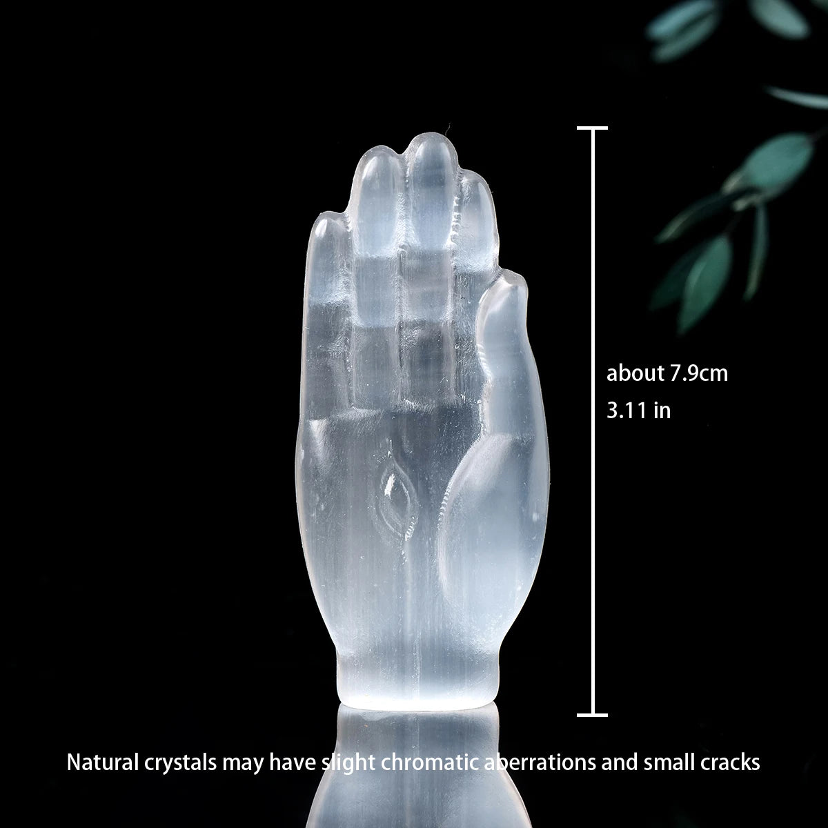 Natural Stone Carved White Selenite Crystal Crafts Evil Eye Hand Statues - Reiki Wicca Crystal Hamsa Hand Of God Figurine