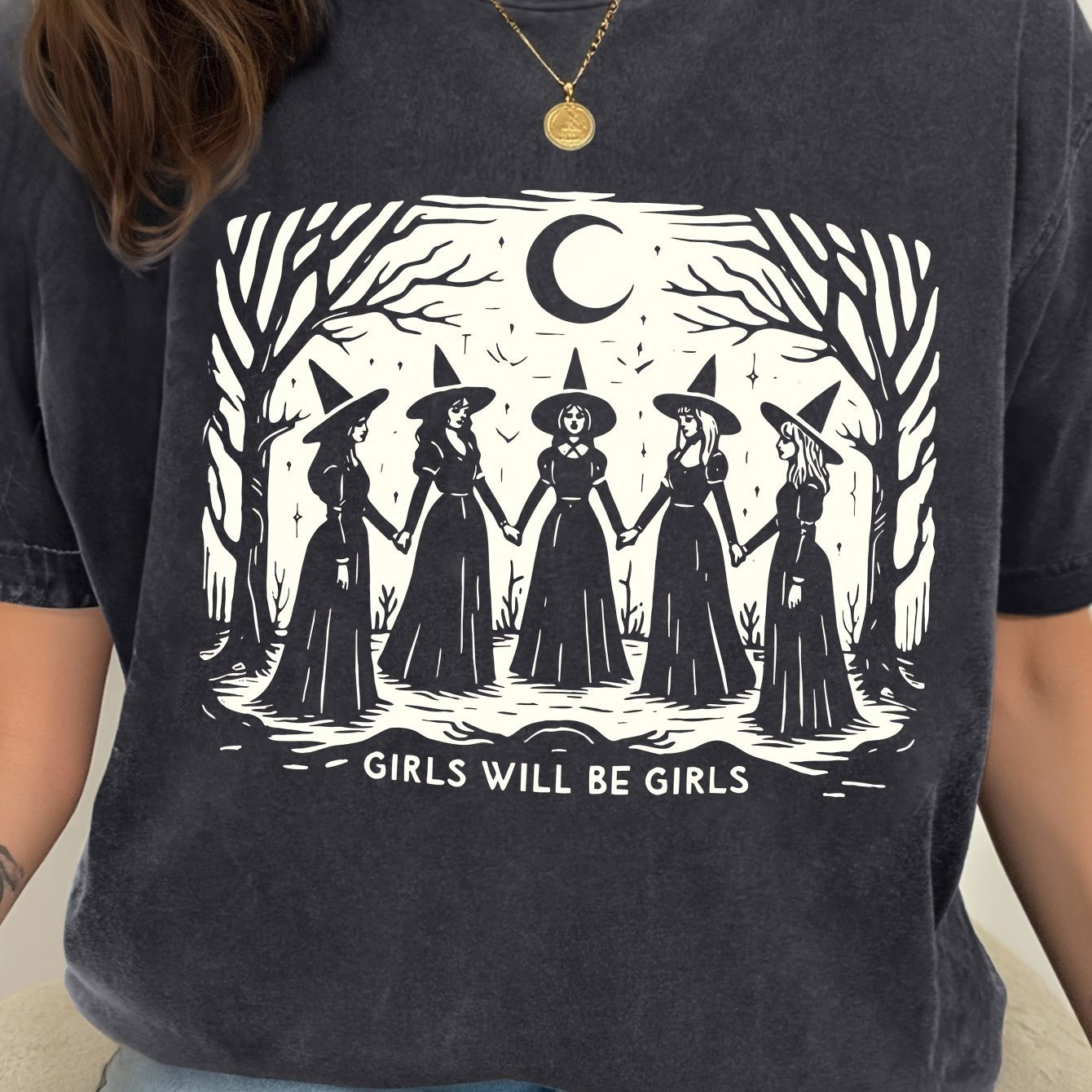 Girls Will Be Girls Coven Grey Witch T Shirt, Halloween T-Shirts, Funny T-Shirts, Witch Shirts, Short Sleeve Shirts For Halloween