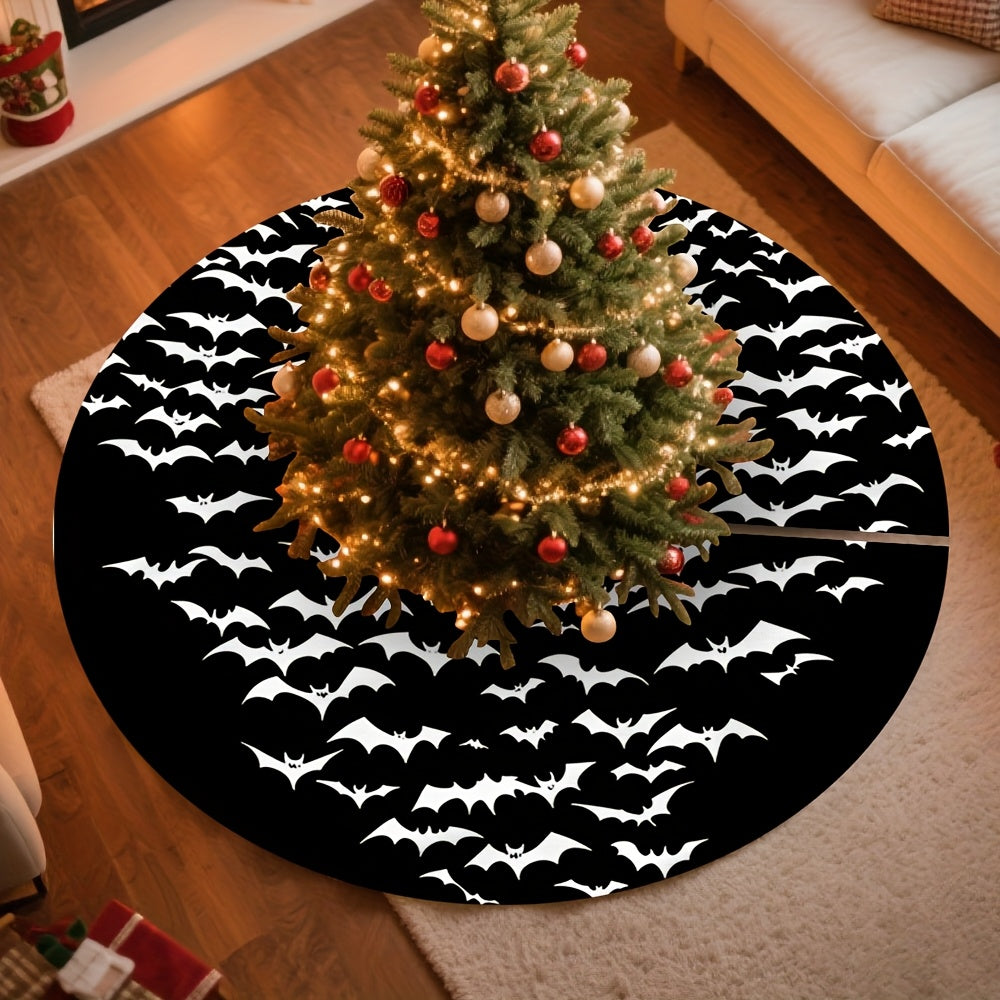 Halloween & Christmas Tree Skirt - Spooky Bat Swarm Base Wrap with Black & White Bats, Durable Polyester Holiday Decor for Indoor Parties, Gift Displays, and Festive Ambiance, No Electricity Needed, Halloween Decorations, Party Decoration, Eerie Atmos