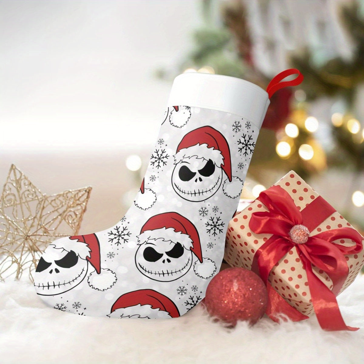 Disney Nightmare Before Christmas Jack Skellington Christmas Stocking - Official Nightmare Before Christmas Decorations with Red Hats, Durable Polyester Holiday Decoration for Home, Party, Gift - Perfect for Christmas, Halloween, Thanksgiving