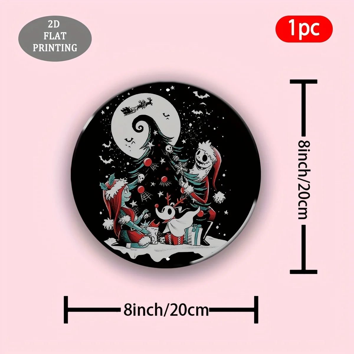 2D Flat Decorative Plaque and Ornament, The Nightmare Before Christmas Jack Skellington Pattern Round Aluminum Sign