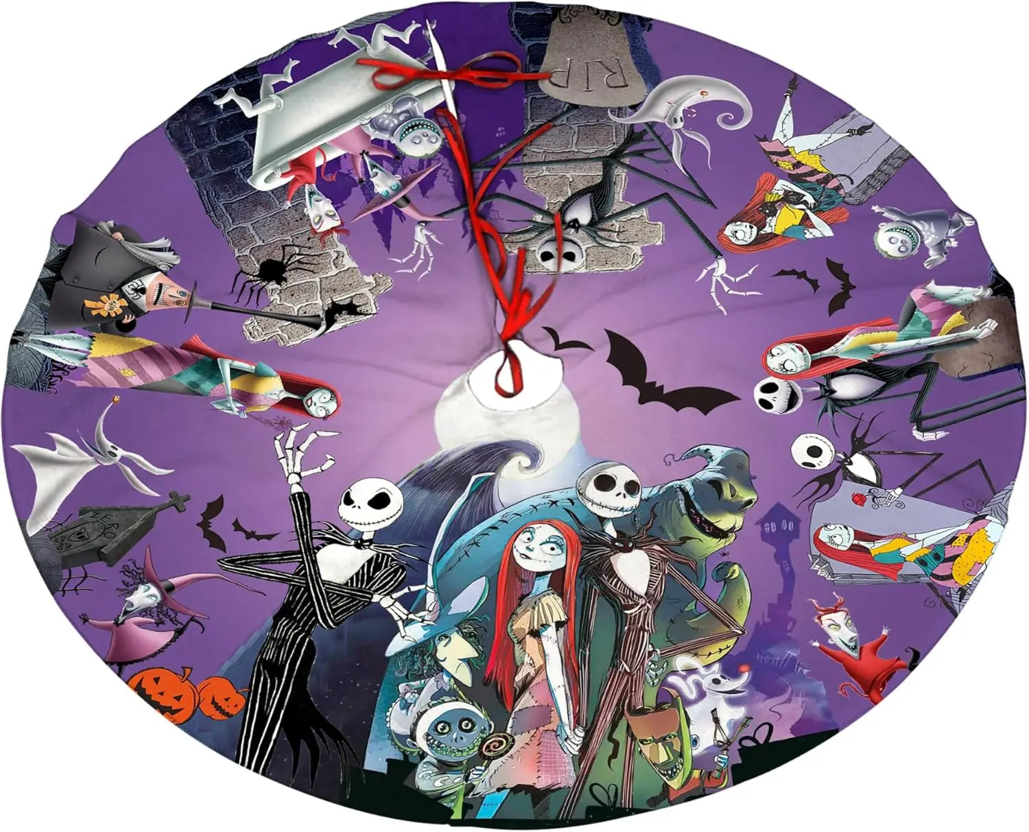 Halloween Tree Skirt Jack Skellington The Nightmare Before Christmas Tree Skirt for Holiday Halloween Christmas, Purple Tree Skirts Mat Decorations, Festival Home Decor