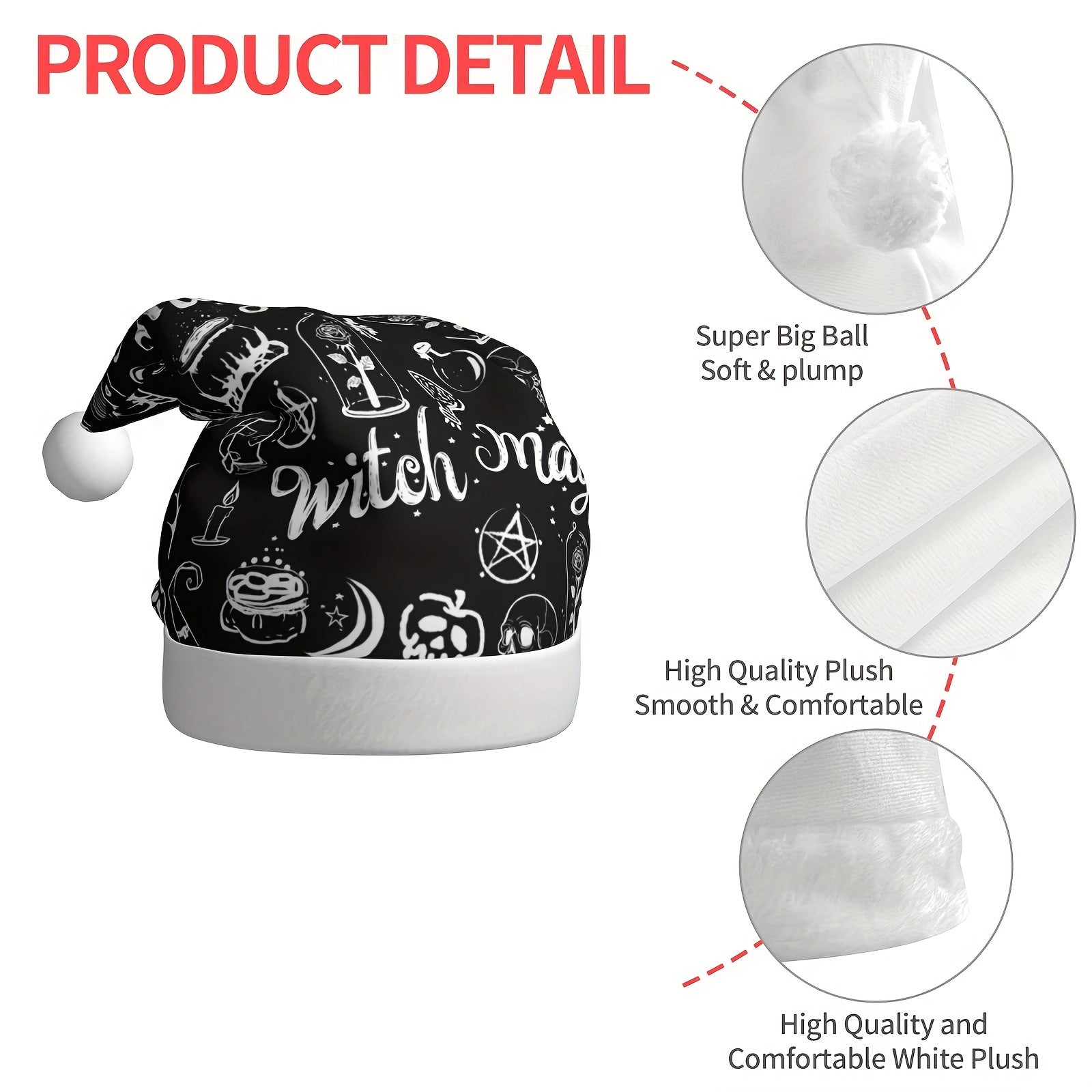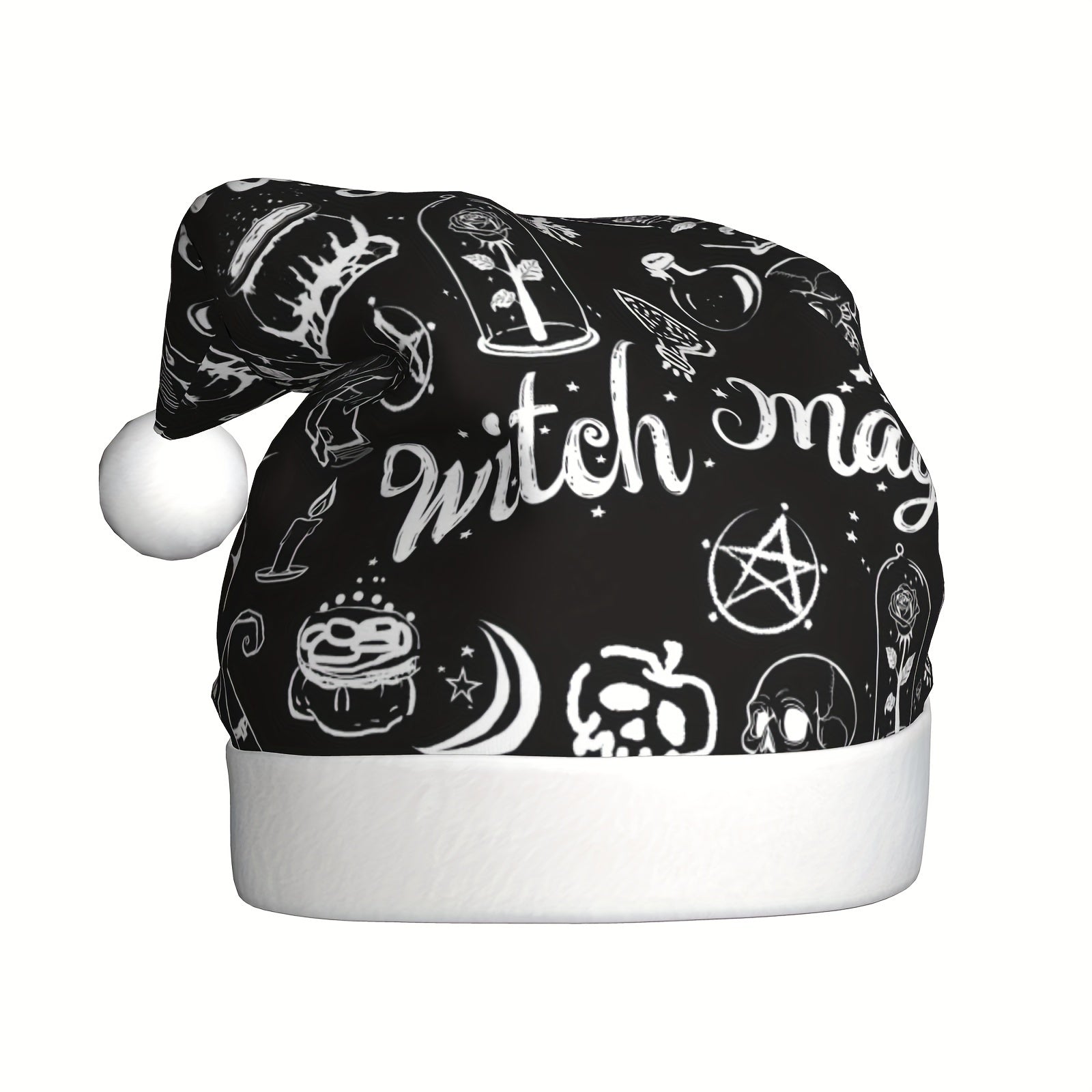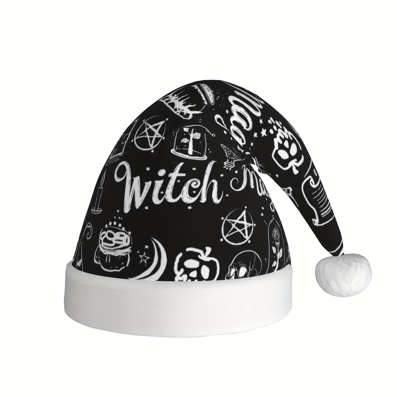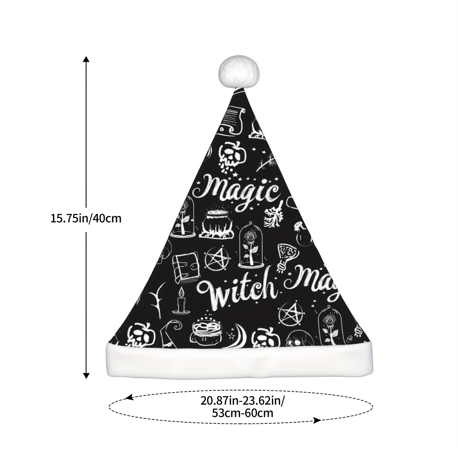 Unisex Christmas Hat - Witch & Halloween Party Decorations with Witches, Bats, Hearts, Stars - & Gothic Design - Durable Fabric for Christmas, Halloween