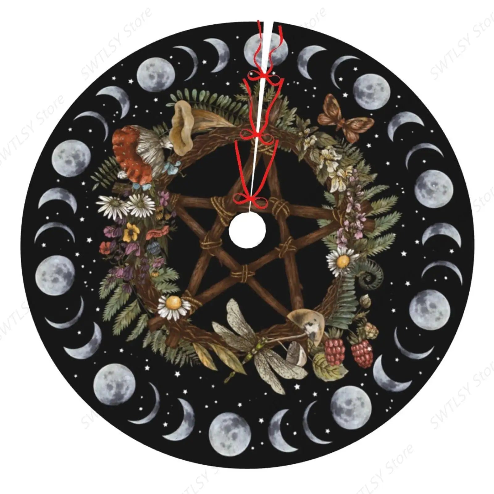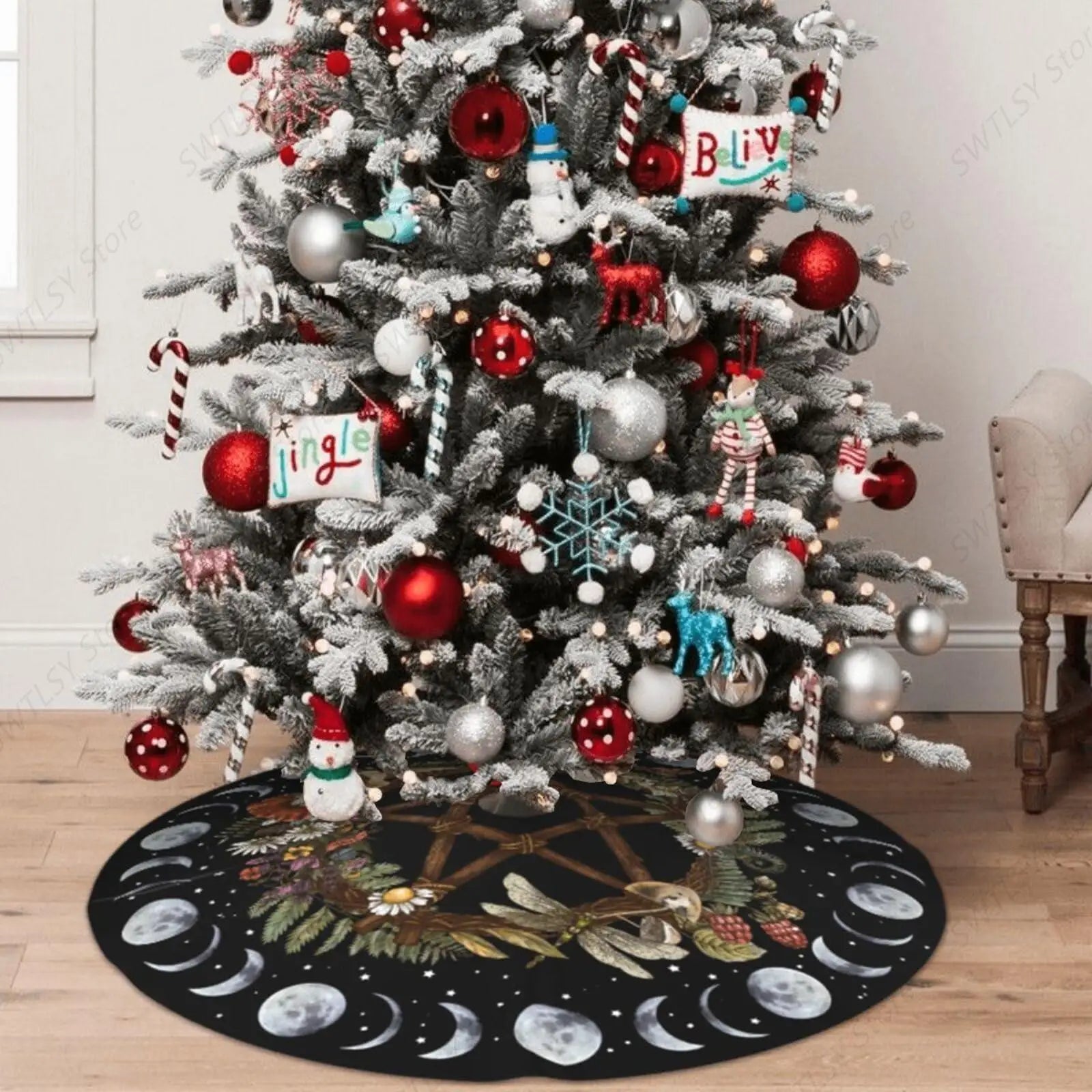 Yule Pentacle Moon Phase Christmas Tree Skirt