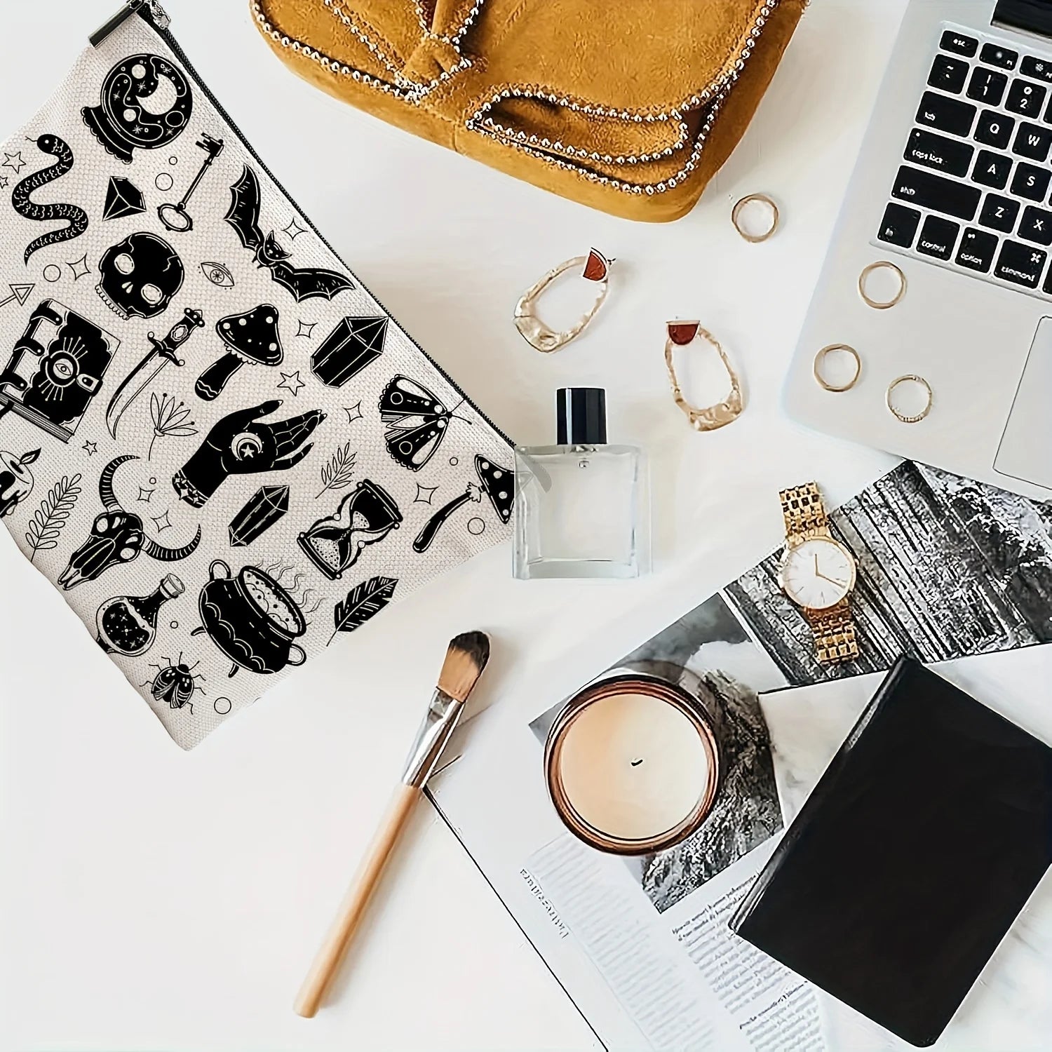 A Gothic style makeup bag - multifunctional large-capacity portable makeup bag, perfect travel zippered pouch organizer.